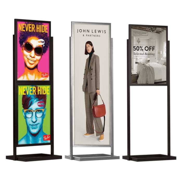Poster stands can be used to display restaurant menus, advertisements, directional signs and other information to attract passing customers.