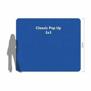The 3x3 pop-up comfortable fits in most exhibition spaces that are common. It will fit in 3m x 1m floor spaces and 3m x 2m floor spaces comfortably. These are the most common exhibition space sizes with exhibitors.