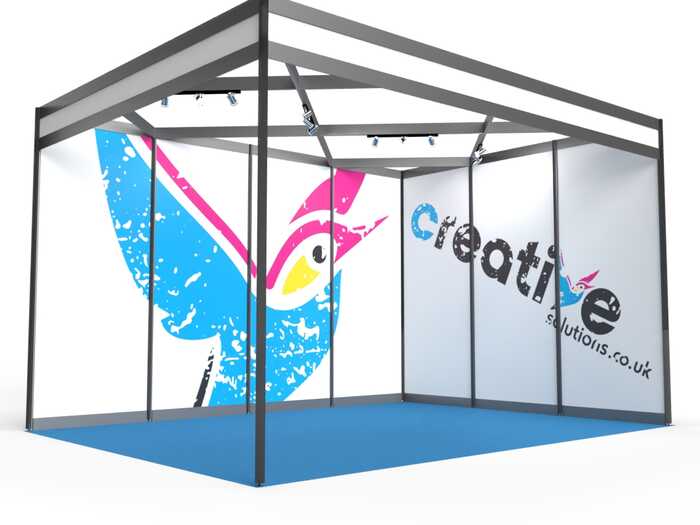 A shell scheme is a modular system used to create exhibition stands. It consists of a metal framework with panels that can be customised with graphics. These are available in 1m increments, typically accommodating up to a 20m² area, with one to three open sides.