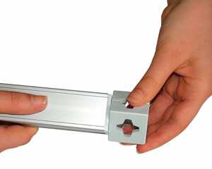The T3 modular display kit is very simple to assemble. The T3 uses a straightforward twist-and-lock mechanism that requires no tools. Graphics fit the simply and seamlessly onto the T3 modular framework with the aid of magnetic fixings around the edge of the graphics and magnetic graphic hanging bars.